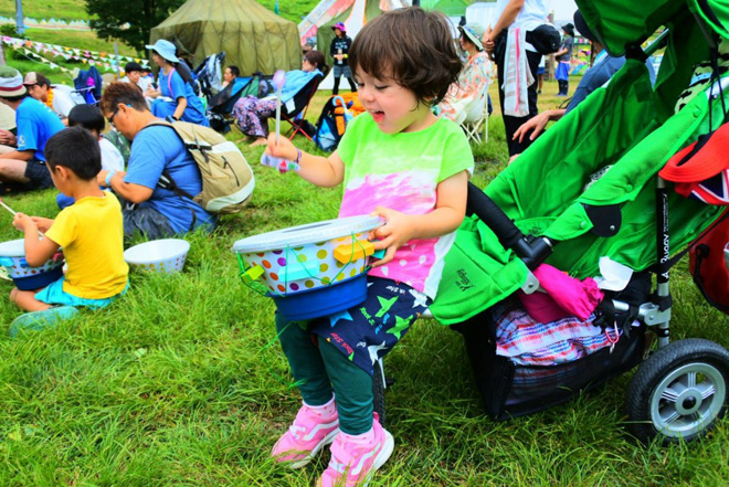 【こどもフジロック】とは、フジロックに参加する子連れの大人と、連れてこられる子どもたちを応援するプロジェクトで、フジロック開催20周年を記念してスタートし、今年で3年目を迎えました。皆で助け合い、子どもも大人もフジロックを思いっきり楽しもうという想いを活動のベースにし、主に、フジロックに子連れで参加する人にとって役立つ情報の収集、発信、シェアや呼びかけをSNSと富士祭電子瓦版を通して行っています。