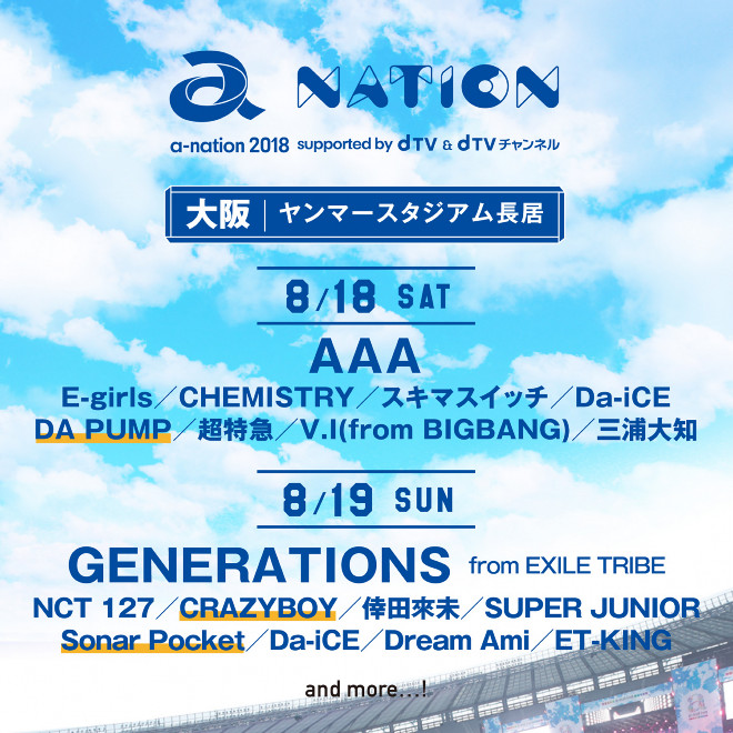a-nation>大阪にDA PUMP、CRAZYBOY、Sonar Pocket