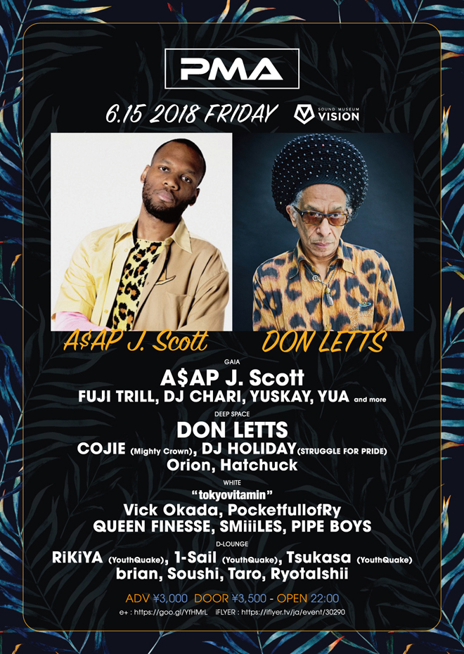 今回東京@VISIONでは人種、ジャンル、国境を超越する新パーティー<P.M.A(POSITIVE MENTAL ATTITUDE)>でA$AP J.Scott、COJIE(Mighty Crown)、再始動したSTRUGGLE FOR PRIDEからDJ HOLIDAYらと競演する。福岡公演では九州のサウンド・システムの重鎮、RED I SOUND が主宰、そして岡山の音楽シーンを引率するYEBISU YA PROで初プレイを行う。
