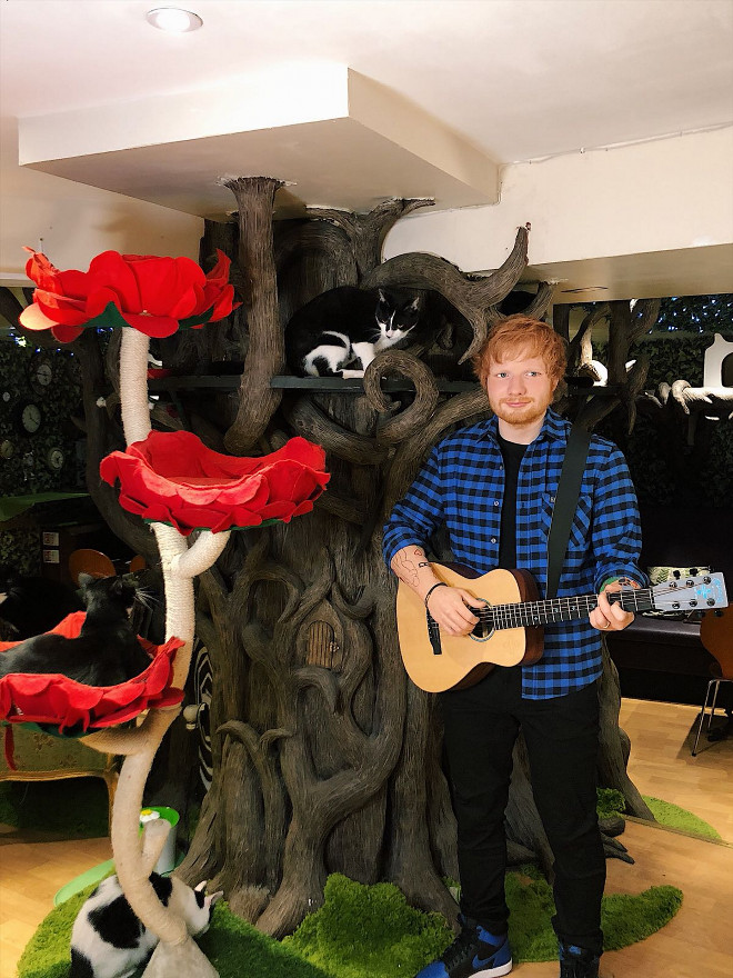 英国ロンドンにある蝋人形館マダム・タッソーは火曜日(6月12日)、新たに制作したエド・シーランの蝋人形を猫好きである彼に合わせ、市内の猫カフェLady Dinah’s Cat Emporiumでお披露目した。
