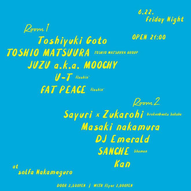 Toshiyuki Goto、TOSHIO MATSUURA、JUZU a.k.a. Moochyが集うパーティが中目黒solfaで開催される。