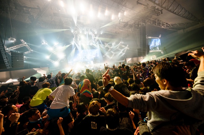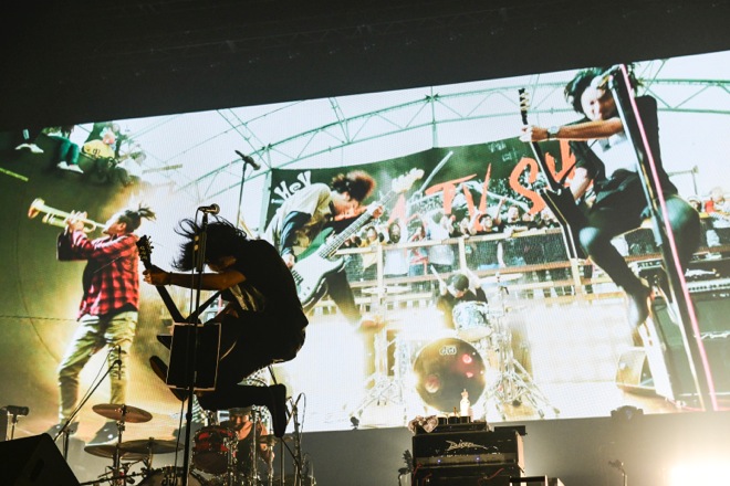 また、先に触れた「Let It Punk」もとてつもないパワー感で披露。昨年と同じ曲とは思えないような内容で、バンドがまだまだ進化してることを感じさせてくれるのだ。フロアの波打ち具合も凄まじく、幕張メッセ全体がひとつの生き物になったかのような躍動感。彼らのライブの良さは知っていたつもり。しかし、想像を遥かに超える状況が起こっているのだ。