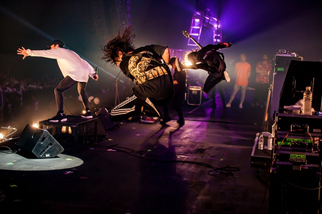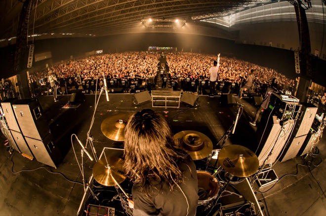 自然発生的にサークル・モッシュが起きた「Mercury」を挟んだ後、「“お前らをここに連れて来る”という去年の約束を、今日果たしたぜ!」とRyoが告げると、どよめきに近い歓声が沸く。それから極悪ヘヴィなサウンドを叩き付ける「Six Feet Under」で会場の温度をグッと高めると、次は「Ups&Downs」をプレイ。Yudai(G)の流麗なギター・サウンドと地響きのごとくうねるヘヴィネスが溶け合う様に引き込まれた。