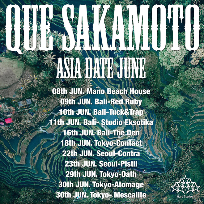 みなさん、こんにちわ。<Huit Etoiles>のDJ/ProducerのQue Sakamotoです。