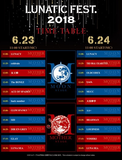 LUNA SEA、GLAY、DIR EN GREY、シド、GLIM SPANKY、back number、ACE OF SPADES、The BONEZ、女王蜂、coldrain、LUNACY(Opening Act)