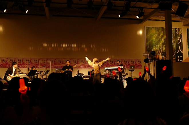 続けてアルバム『Femme Fatale』から新録曲「貴方はまだ愛を知らない」「あたしの細胞」を立て続けに披露。どちらも刺激的なタイトルに負けない鋭い言葉と音楽性の高さも強く感じさせる新曲だ。最新となった進化形を見せつけた後は、大ヒットチューン「HEART BEAT」で会場のボルテージを更に突き上げ、MCではニューアルバムへの自信と、CDというパッケージへの想い入れを語った。本当に集中したい事に集中して作ったという今回のアルバムについては「毎回(リリースする度に)そう想ってはいるけど、特に今回は強く、最高傑作だと想っている」と静かながら自身に満ちたトーンで断言。