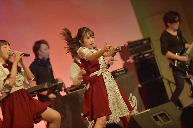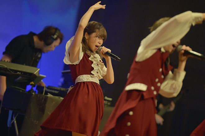 ナレーションが、自分がした選択が果たして正しかったのか、誤った選択により痛みを生み出してしまっているのではないかとさらに迫る。しかしながら、ここまではハードでグルーヴィーなロックサウンドを通して会場を激しく揺らしてきた彼女たちだったが、転じて中根もにゃの「ツアーファイナルへようこそ!STARMARIEです!」という声から「メクルメク勇気!」、「ナツニナレ!」、「姫は乱気流☆御一行様」と、とことん明るい楽曲が続けて披露される。それぞれアニメの主題歌を務めたポップでキラキラと輝くような楽曲で、前半のステージとは対照的にも映るが、このレンジの広さも自身らの描く世界“ファンタジーワールド”の深さを醸成しているのではないだろうか。ハードなだけ、ダークなだけではなく、ステージを通して1本の物語を表現する彼女たちにとってはレンジの広い楽曲性こそがそのストーリーの緩急、起承転結を描いてくれる。