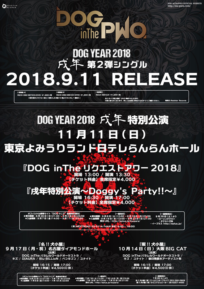 DOG inThePWO、“DOG YEAR 2018戌年”第二弾SG発売と特別公演の開催を発表