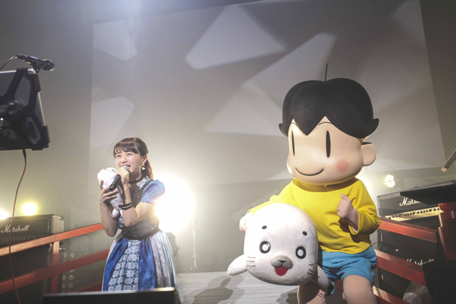 ここでゲストのナナホシ管弦楽団が登場。アニメ『デジモンユニバース アプリモンスターズ』の主題歌としてヒットを記録した「ガッチェン!」を熱演した後、さらにアニメ『少年アシベ GO!GO!ゴマちゃん』より、アシベとゴマちゃんが登場し、観客を和ませた。演奏されるのはもちろん、同アニメのエンディングテーマ「ゴマウェイ」だ。