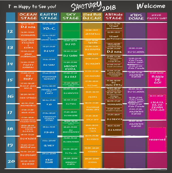 7月8日(日)に東京・お台場で開催される<SANCTUARY 2018>のタイムテーブルが発表となった。