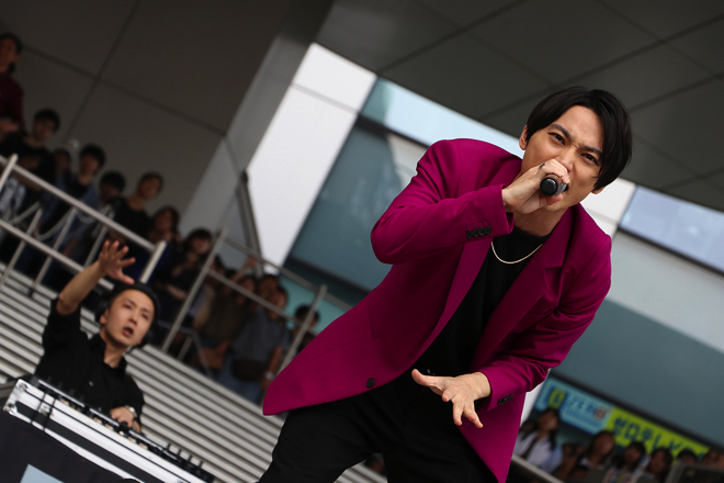 SKY-HIが6月24日、ニューシングル「Snatchaway / Diver’s High」のリリース記念ミニライブを、「ユニコーンガンダム」の立像があるダイバーシティ東京 プラザのフェスティバル広場にて行った。