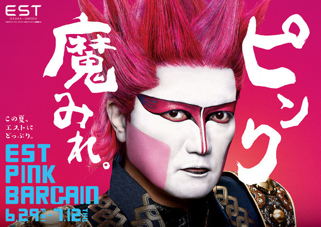 ピンク色にまみれたデーモン閣下のバーゲンビジュアルは、JR大阪駅や阪急梅田駅などで順次掲出される予定となっている。
