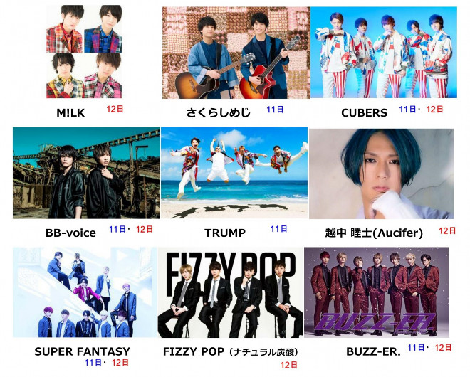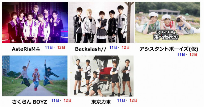 Funky Galaxy from 超新星 / DEEP / 田口 淳之介 / Lead / RADIO FISH / ファンキー加藤 / MYNAME / BOYS AND MEN / SUPER★DRAGON / XOX / MeseMoa. / M!LK / さくらしめじ / CUBERS / 祭nine. / BB-voice / TRUMP / MAP6 / TRCNG / 祭nine. / さとり少年団 / SOLIDEMO / #ハッシュタグ / COLOR CREATION / B2takes! /Rush×300 /BOYS AND MEN研究生 / *ChocoLate Bomb!! /ブレイク☆スルー /TRYZERO / スタメンKiDS / アシスタントボーイズ(仮) / BUZZ-ER. / FIZZY POP(ナチュラル炭酸) / さくらんBOYZ / CrownClown / EverZOne / White Explosion / FEARLESS / MAUVE / 越中睦士(Λucifer) / SUPER FANTASY / 東京力車 / CoLoN: / Backslash// / AsteRisM⁂ / NORD /THE BEAT GARDEN /SAMURAI TUNES / 絶好超団☆LoVe