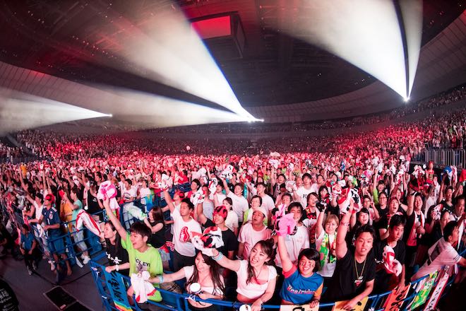 この日を待ち望んだ風一族(ファンの総称)が、全国から横浜アリーナに集結。会場周辺では各地のファンが大旗を掲げ、湘南乃風の代名詞ともなっているタオルを手に、今か今かと、開場を待っている姿が印象的だった。開場と同時になだれ込むように会場に入るおよそ12,000人のファン。ライブが始まる前から熱気と歓声が鳴り止まない。