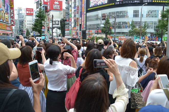 2018年7月4日(水)数多くのアーティストの上映会が開催されていることで注目を集めている西武新宿駅前のユニカビジョンで、「赤西仁 スペシャル上映会」が行われ、赤西仁のバースデーということもあり、多くのファンが集まって盛り上がった。