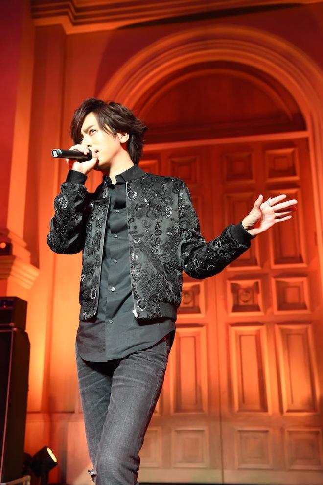 そして、定刻の17:30にDAIGOがステージの正面扉より登場。ニューシングルから「真夏の残響」「今夜、ノスタルジアで」の2曲を熱唱した。そしてトークコーナーではDAI語を交えて感謝の気持ちを伝えた。