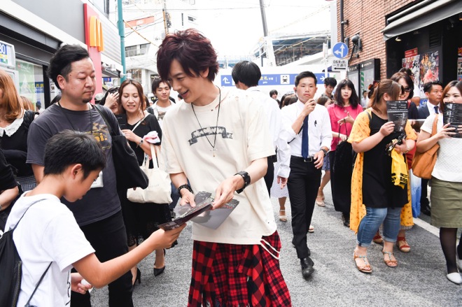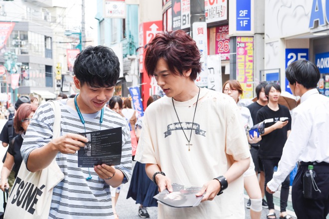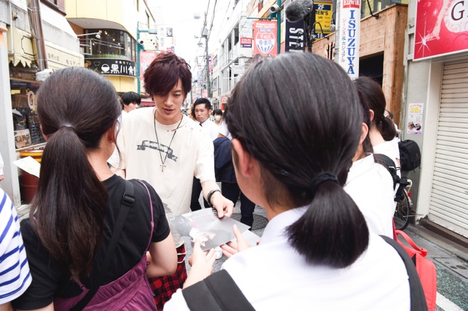 この日、再び下北沢を訪れたDAIGOはサプライズでチラシ配りを実施、街行く老若男女に1枚ずつ丁寧にチラシを配り歩いた。チラシを受け取った人たちは、いきなりのDAIGOの出現に戸惑いながらも興奮した様子。初心を忘れず、新たな決意を胸に抱かせる大切な作品となったという「真夏の残響 / 今夜、ノスタルジアで」を体現する一日だった。