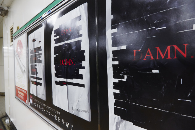 この広告は、黒塗りされた公文書を思わせるデザインに、最新アルバムのタイトルで「くそっ」「ちくしょう」などの意味を持つスラング“DAMN.”の文字が重ねられたものだ。