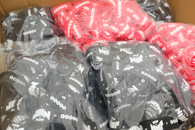 ▲こちらは当日配る特製ラバーバンド。昨年も大人気であっという間になくなってしまったので、早めにもらいに来てね。