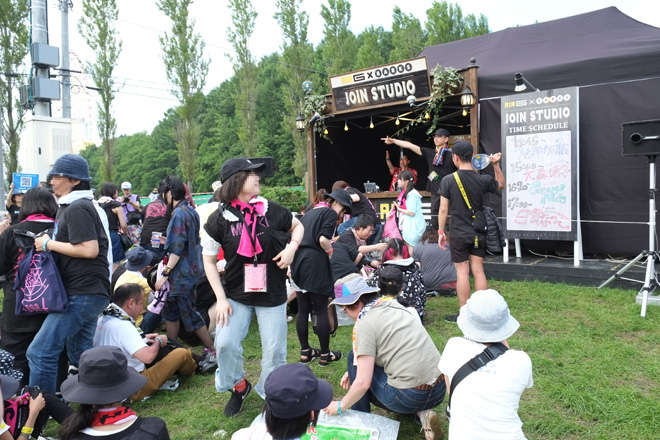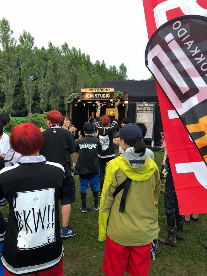 カラオケを歌って最高得点を獲得した人には、「AIR-G’ × BARKS JOIN STUDIO」に遊びに来てくれたアーティストの直筆サインが入ったTシャツをプレゼントするという採点バトルではあったものの、<JOIN ALIVE>に来ているオーディエンスはみんな音楽の楽しみ方をよく知っているようで、極端に歌が上手い人、気持ちののめり方が半端じゃない人、ノドを酷使しまくってシャウトをかます人、ただただ好きな歌を気持ちよく歌う人…と、その楽しみ方はまさに十人十色。特典ゲット目的ではなく、純粋に音楽を楽しみたという思いが「AIR-G’ × BARKS JOIN STUDIO」にもたっぷりと充満するひとときが訪れた。これが<JOIN ALIVE>というフェス現場が生み出す幸せの空間なのだろう。