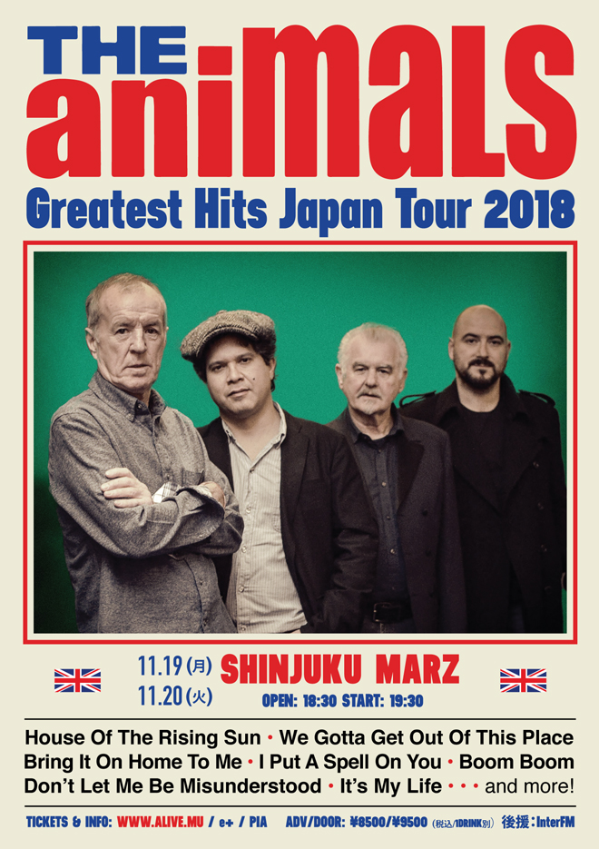 アニマルズの来日公演が、11月19日(月)、20日(火)に東京・SHINJUKU MARZで開催されることが決定した。