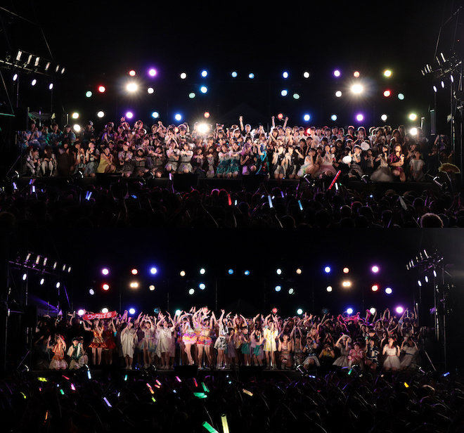 <TOKYO IDOL FESTIVAL (TIF)>、<@JAM EXPO>と並び、東日本で行われる3大アイドルフェスとして定着した<アイドル横丁夏まつり!!>。ほかの2つのフェス前に開催され、まだあまり動員のないグループや、結成してまもないグループが多く出演することから「横丁夏まつりで見つかった」と、ここを切っ掛けにして口コミでうわさが広がり、その後人気が加速するアイドルも多い。またこのフェスだけで行われるコラボも見所の1つで、今年はEDMアイドルグループとして熱狂的なファンを獲得しながらも、2017年に活動を終えたStereo Japanの「Electron」をカバーしたStereo Yokochoと、今年2月に解散し秀逸なカバーソングと数々の名曲を残し現役アイドルの中にもファンが多い、アイドルネッサンスの「前髪」をカバーしたアイルネ大好き選抜コラボステージが8日に行われた。