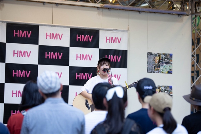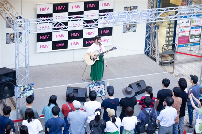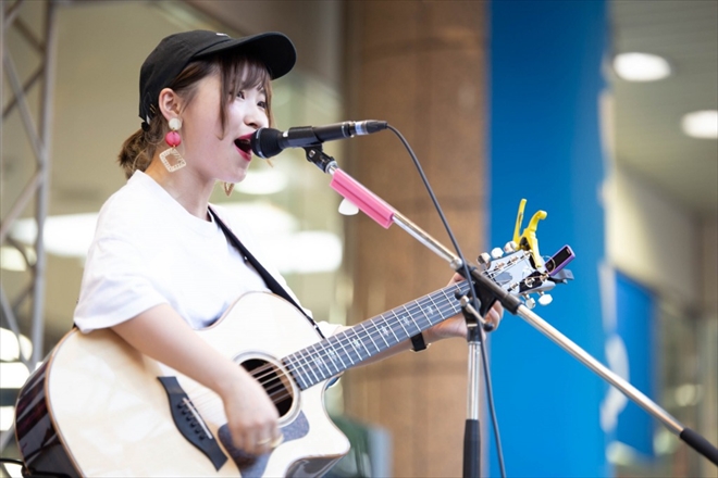 白のTシャツに鮮やかなグリーンのスカートと、47都道府県ライブツアー初日東京公演と同じ格好で大宮アルシェに登場したみきなつみは、「埼玉県出身シンガーソングライターみきなつみ、47都道府県ツアーファイナルやって参りましたよろしくお願いします!」と一言挟み、「神様も知らない」からライブをスタートさせた。