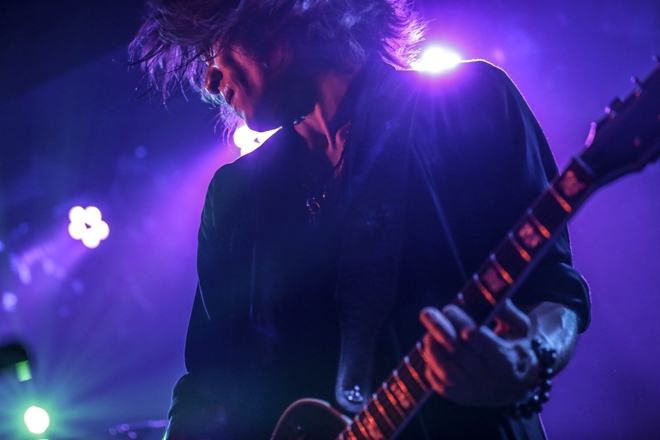 続く「Bloody Moon」の前には、「オレにとって思い入れのある曲というか。GOSPELS OF JUDASというプロジェクトに入って一番初めに氷室京介さんと一緒に書いた曲で。凄く光栄なことをさせていただきました」とエピソードトークも少々。同曲は<氷室京介 COUNTDOWN LIVE CROSSOVER 12-13>でライブ披露されており、その模様が映像作品として残されているだけにファンにも耳馴染みの深い曲だが、その再現性が素晴らしかった。それぞれのパートの音がはっきりと聴こえていながらも独特のうねりのある演奏で、たとえば演奏自体がタイトでソリッドというものとは次元が違う。そこに氷室京介が立っているかのような敬意の念さえも感じさせるバンドサウンドを響かせていたことが印象深い。