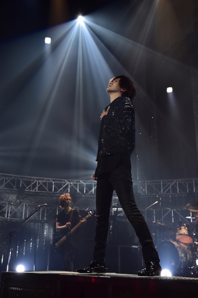 「俺はDAIGO☆STARDUSTには絶対負けられないので、みんなで盛り上がって絶対にDAIGOを勝たせてくれよ! いいか?」と闘志をむき出しにしながらも、「俺もDAIGO☆STARDUSTはリスペクトしているよ。あんなにキラキラした格好で40歳になっても出てくる勇気。ただ、アイツはわかってない。時代に合っていないってことを(笑)」と沸かせ、ポップチューン「心配症な彼女」からバンドのメンバーとの絡みも刺激的な「CHANGE !!」へ。