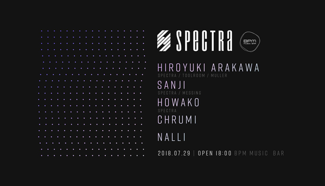 2015年から続くHiroyuki Arakawa主宰のテクノレーベル「SPECTRA」が、2018年5月より毎月ストリーミング番組を渋谷BPM MUSIC BARより開始した。先月は50人ほどのキャパの会場に100名の来場があり、熱気冷めやまない中、早くも第3回目が開催となった。このイベントは会場でも自宅でも和製テクノレーベル「SPECTRA」の今を気軽に体感できる内容となっている。