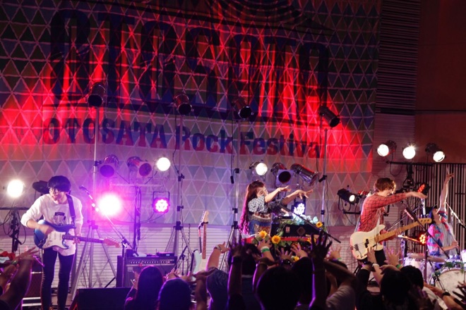 2日間に渡って行われた<OTOSATA>もいよいよクライマックス。超満員の観客に迎えられ、ステージに登場したのはフェス皆勤賞となる、My Hair is Bad。「6年目の出演です。体力が10あるとしたら、12使っていきたいです」と、椎木知仁(Vo/Gt)がライブへの意気込みを語ると、序盤から異常なほどのテンションでフロアをかき回す。真っ直ぐで直情的な歌と演奏で観客の心を鷲掴みした彼らのステージがこの日一番の盛り上がりを生むと、残すは各ステージのトリのアーティストのみ。彗星ステージは、WOMCADOLEが観客の残った体力を搾り取るような、ヘヴィで攻撃的なステージで締めくくり、Marbleステージは、電波少女が独特の空気感を醸し出しながら、ダンサーを加えた賑やかなステージで締めくくる。
