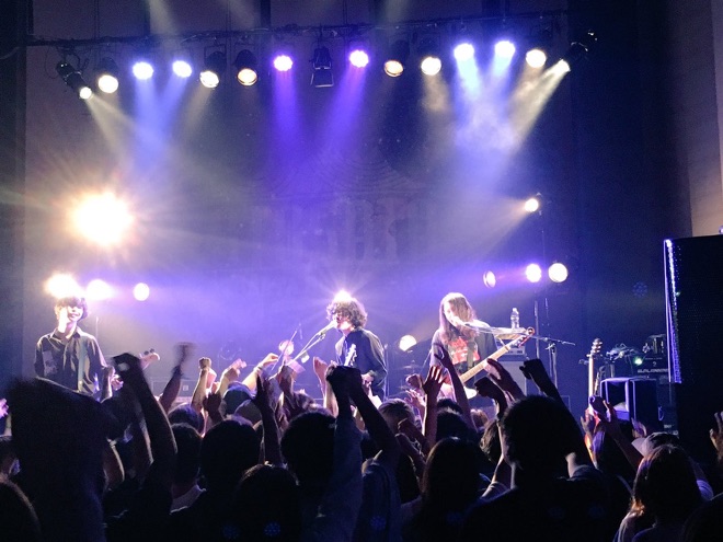 2日目の幕開けを務めたのは、彗星ステージのテスラは泣かない。タイトなバンド演奏に華を添える飯野桃子(Key)の鍵盤サウンド、村上学(Vo/Gt)の真摯な歌声が胸に響いた彼らのステージ。ライブハウス風の薄暗い会場も日常を忘れさせ、フェスモードへと気持ちをスイッチングしてくれる。Marbleステージのトップは、さよならポエジー。3人が力強く丁寧な歌と演奏で紡ぐ楽曲世界に体を揺らしたり、座ってじっくり聴き入ったりと、集まった観客はそれぞれのスタイルで楽しんでいた。ALPSステージの一発目を務めたGOOD ON THE REELは、ライブ序盤から自身の世界観を丁寧にしっかりと作り上げていく。「僕も名字が“ちの”って言うんですよ」と笑う千野隆尋(Vo/Gt)の感情的な歌と力強くも繊細な演奏が、観客の心をガッチリ掴んでいた。