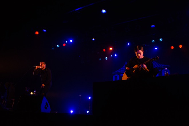 そして、いよいよALPSステージに2日間の大トリとして登場したのは、長野県出身のラップ・グループ、MOROHA。魂込めたラップとアコギ・サウンドで序盤から観る者の心を揺さぶると、会場は彼らの独壇場。「フェスの楽しい思い出を台無しにするから」とうそぶきながら、熱く真正直なメッセージを直接的に心に届けると、観客は固唾をのんでステージを見守り、真正面から言葉を受け取る。アフロ(MC)が主催者の田中店長や<OTOSATA>への想いを語りながら、50分のステージを完全燃焼したMOROHAは、観る者の心に大きな爪痕を残してステージを去った。