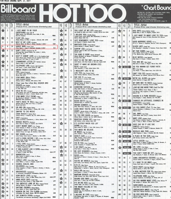 「Handy Man」はジミー・ジョーンズのオリジナル(Billboard誌R&Bシングル・チャートで60年に3位を記録)で、64年にはデル・シャノンでヒット(このヴァージョンも素晴らしい!)。そして77年ジェームス・テイラーで大ヒット、Billboard 誌HOT100では9月10日付17日付の2週、4位を記録した。