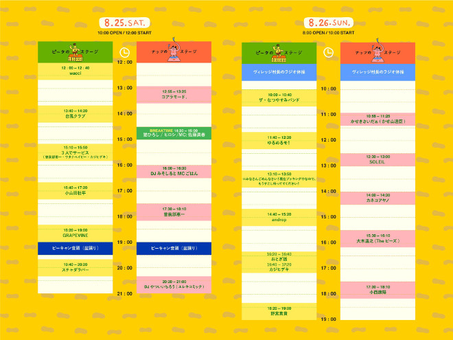 ▲<PEANUTS CAMP 2018>タイムテーブル