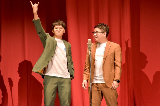 主催者らしくそれぞれに挨拶をしたあとは、本日のスペシャルMCとして吉本新喜劇の座長・小籔千豊を5,000人の“こやびん”コールで呼び込んで3人で公演中の注意事項をアナウンス。「今日はNOしんみりで。みなさん、めちゃくちゃ楽しんでください」と呼びかけつつ、「ただ、僕だけは悲しいです」とオトす小籔に「え、そうなん?」と無邪気に目を丸くする二人が面白い。独特のグルーヴ感を生む3人の掛け合いに会場はすっかり“こなそん色”に染め上げられた。