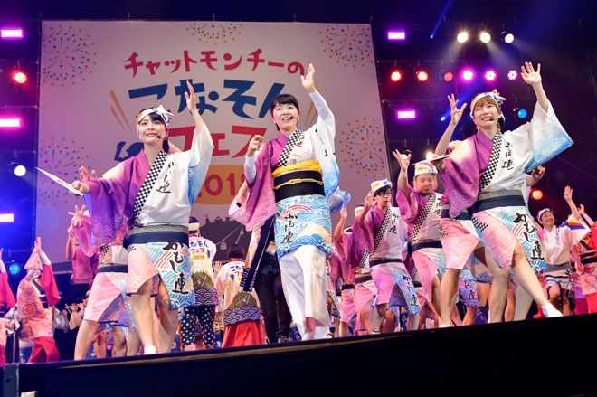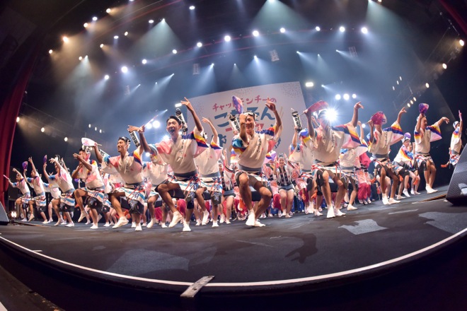 ▲かもし連 with 蜂須賀連言い尽くせないほどの感謝と、褪せることのない大好きだという気持ち。チャットモンチーからオーディエンスへ、オーディエンスからチャットモンチーへ。グランドフィナーレとなった阿波おどりは温かな想いを互いに手渡し合うような幸福なひとときだった。橋本と福岡の率いる“かもし連”にスペシャルゲストとして高橋久美子も参加、客席を踊りながら練り歩くオリジナルメンバーの3ショットがうれしい。