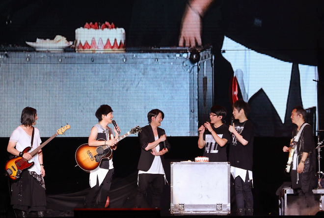 楽曲後のMCではMaydayのドラマーMingの誕生日をサプライズで祝い、TERUがHappy Birthdayをアカペラで披露するサプライズも。さらにそこから最後のサプライズとしてGLAYのバラード曲「I’m in Love」をコラボし、会場中巻き込んでの大合唱にて締めくくった。