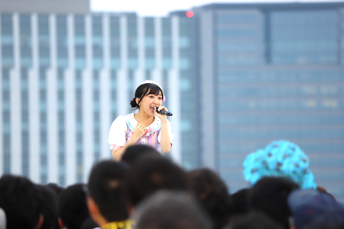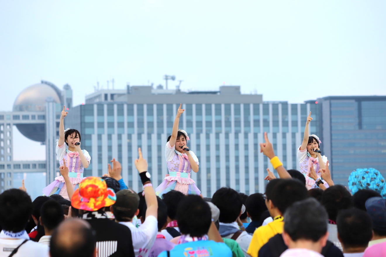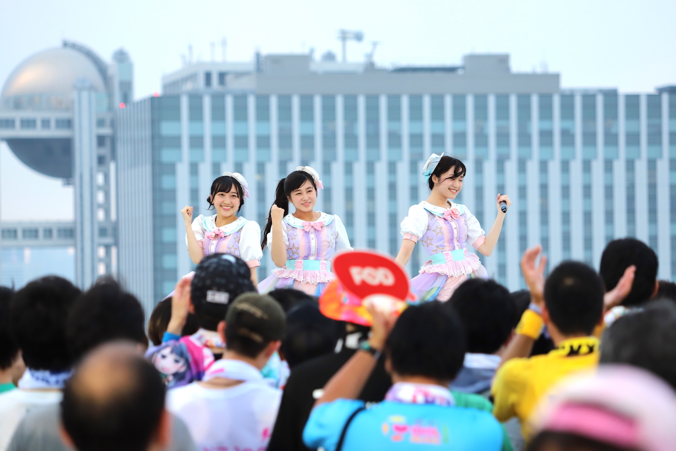 今年TIF初出演となる林鼓子・森嶋優花・厚木那奈美の3名による声優ユニットRun Girls, Run!。デビュー曲「スライドライド」や「キラッとスタート」を披露、3人の力強い歌声が陽が沈みゆくSKY STAGEに響いた。