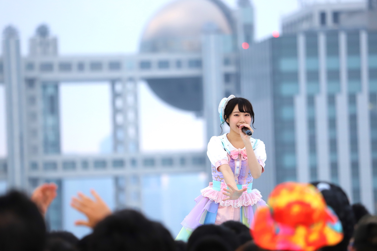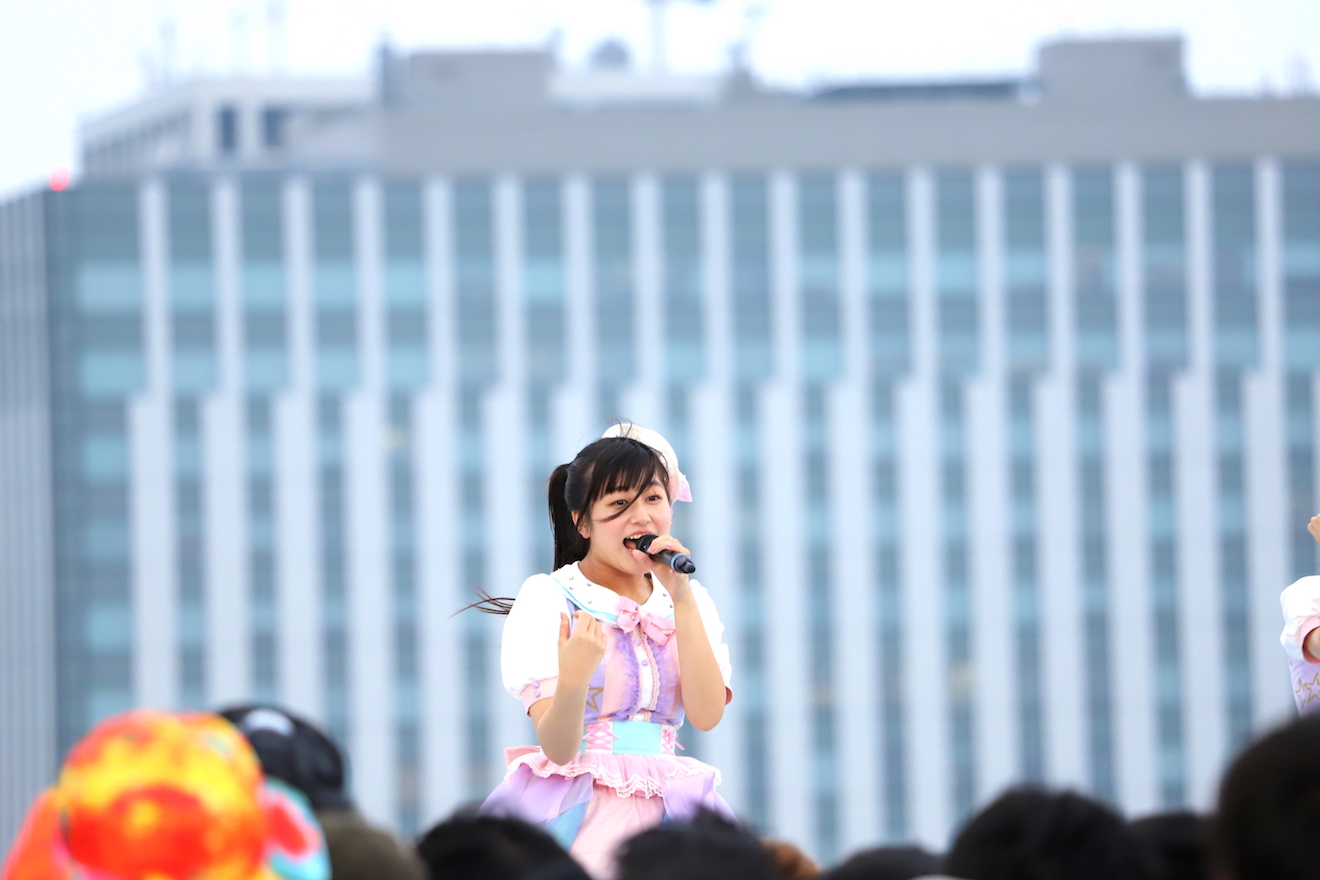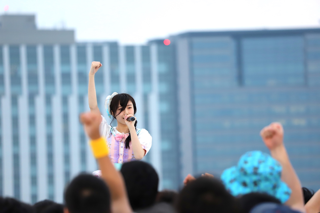 今年TIF初出演となる林鼓子・森嶋優花・厚木那奈美の3名による声優ユニットRun Girls, Run!。デビュー曲「スライドライド」や「キラッとスタート」を披露、3人の力強い歌声が陽が沈みゆくSKY STAGEに響いた。