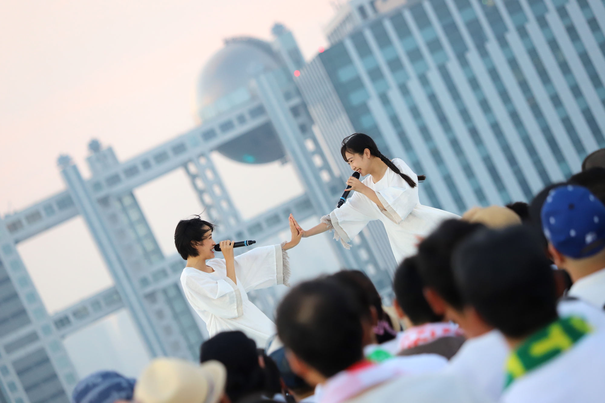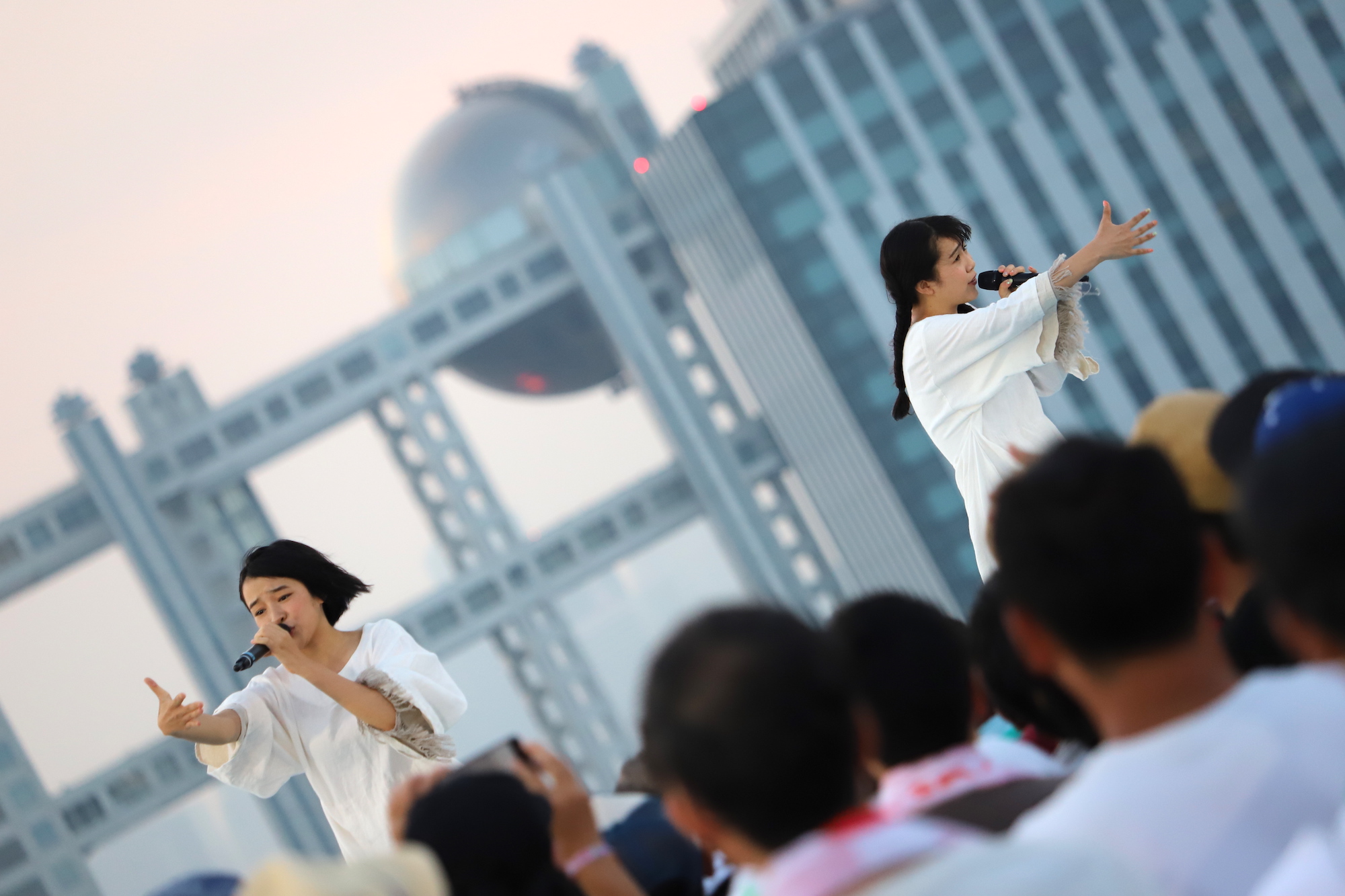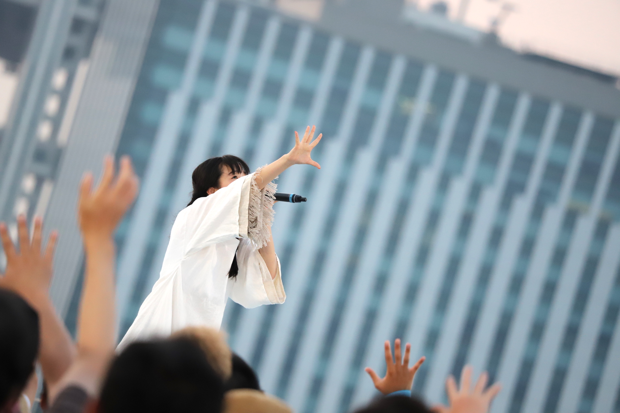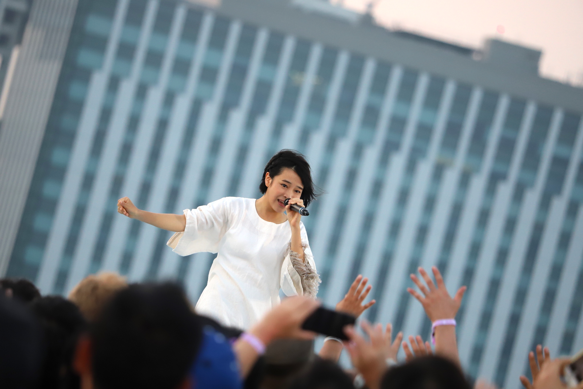 透きとおるような歌声で会場を惹きつけ、高い音楽性とダイナミックなダンスパフォーマンスで心浮き立たせてくるamiinA。「Atlas」サビでは観客の大合唱がアンセムのように彼女たちを支えた。「一年ぶりにこのステージに戻ってきました!」ラストはアコースティックでの「I’m Home」。