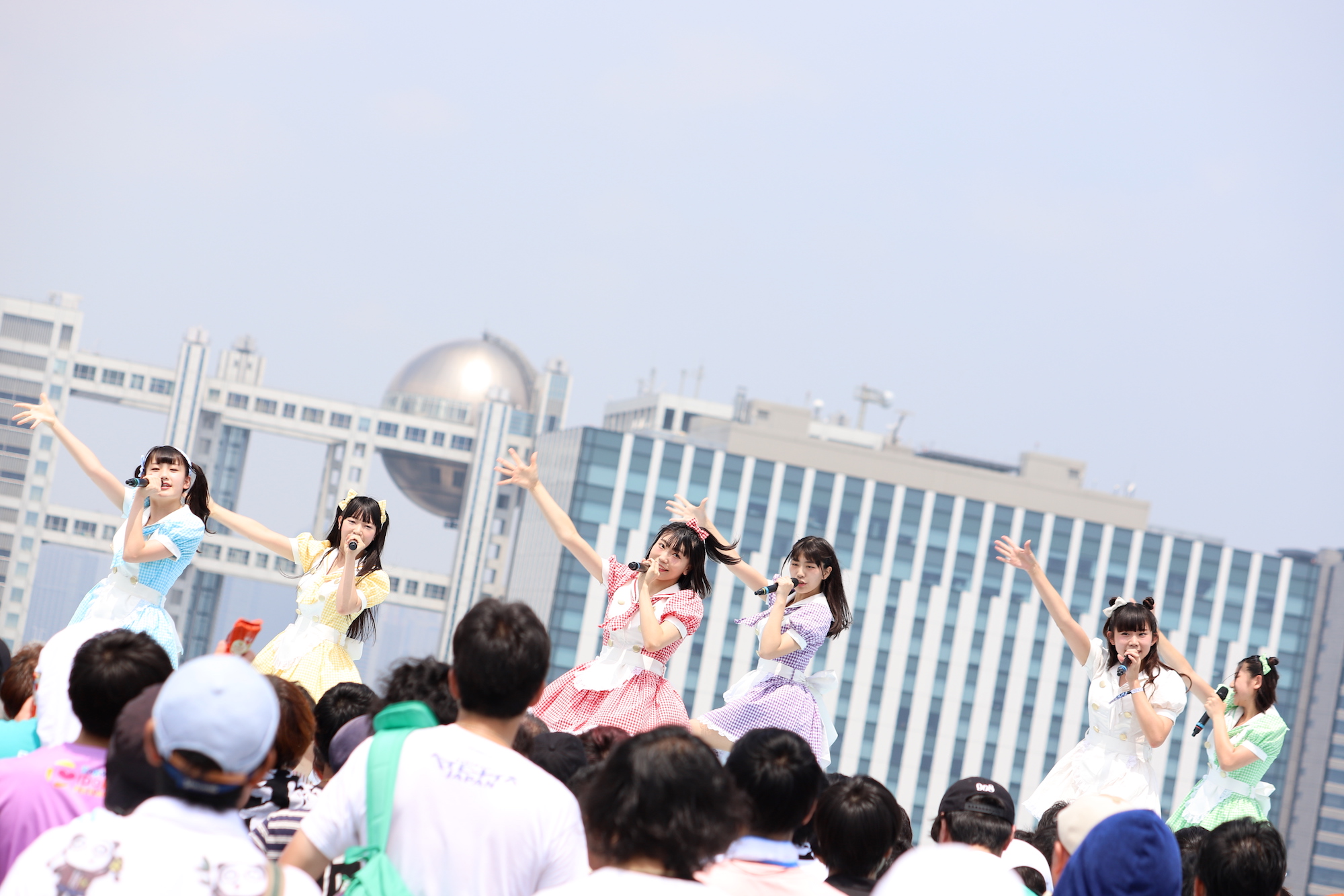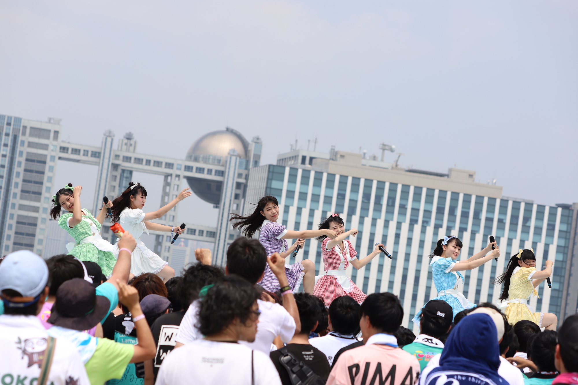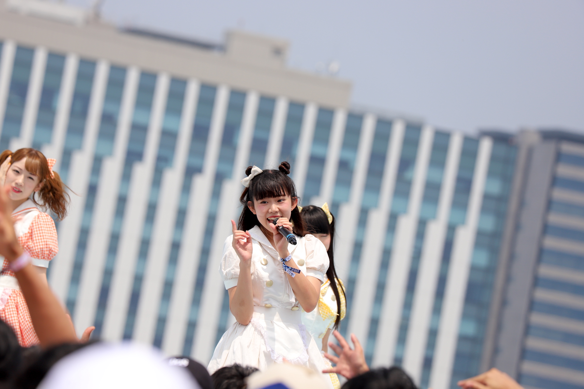 全国選抜LIVEの関東・北陸Aブロック優勝者として2度目のTIFのチケットを勝ち取った、指原莉乃も注目の純粋カフェ・ラッテ。可憐な入場マーチから写真撮影・拡散OKのアナウンスも欠かさず、夏空にぴったりな「Treasure!」でSKY STAGEの開放感を満喫していた。