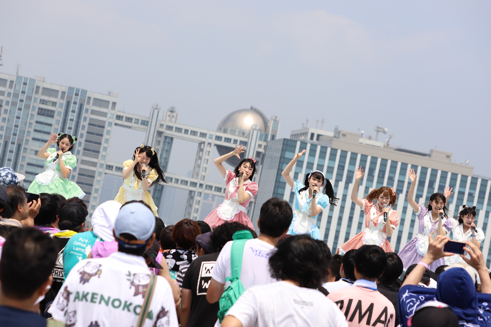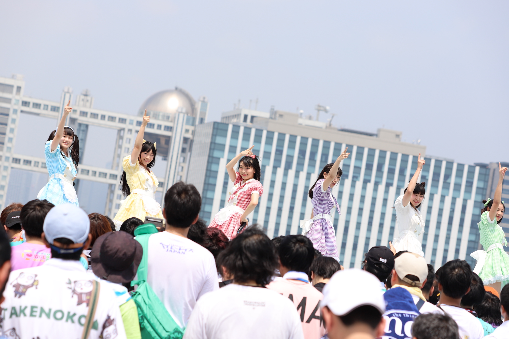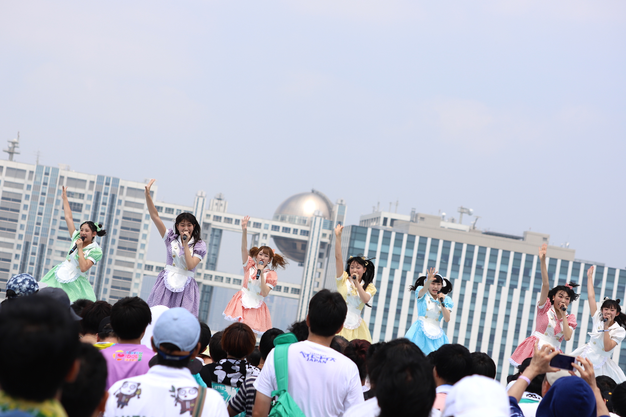 全国選抜LIVEの関東・北陸Aブロック優勝者として2度目のTIFのチケットを勝ち取った、指原莉乃も注目の純粋カフェ・ラッテ。可憐な入場マーチから写真撮影・拡散OKのアナウンスも欠かさず、夏空にぴったりな「Treasure!」でSKY STAGEの開放感を満喫していた。