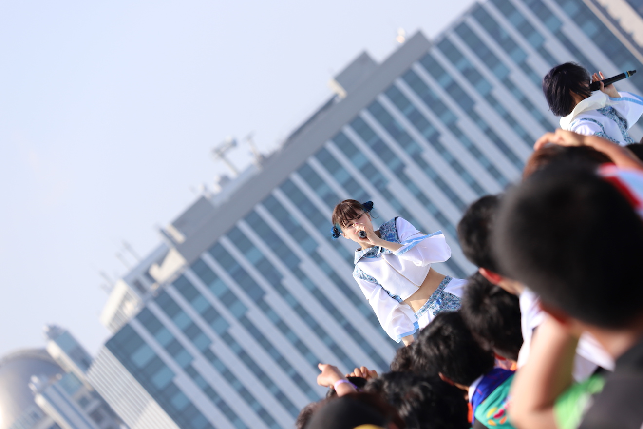 uijinのTIF2018最後のステージ。4人は想いの溢れたパフォーマンスで魅せる。晴天のSKY STAGEで披露された「bluesky」に、オーディエンスのテンションは最高潮に。ラスト「future」では、観客席に無数の拳が突き上がり、お台場の空に大合唱を響き渡らせた。