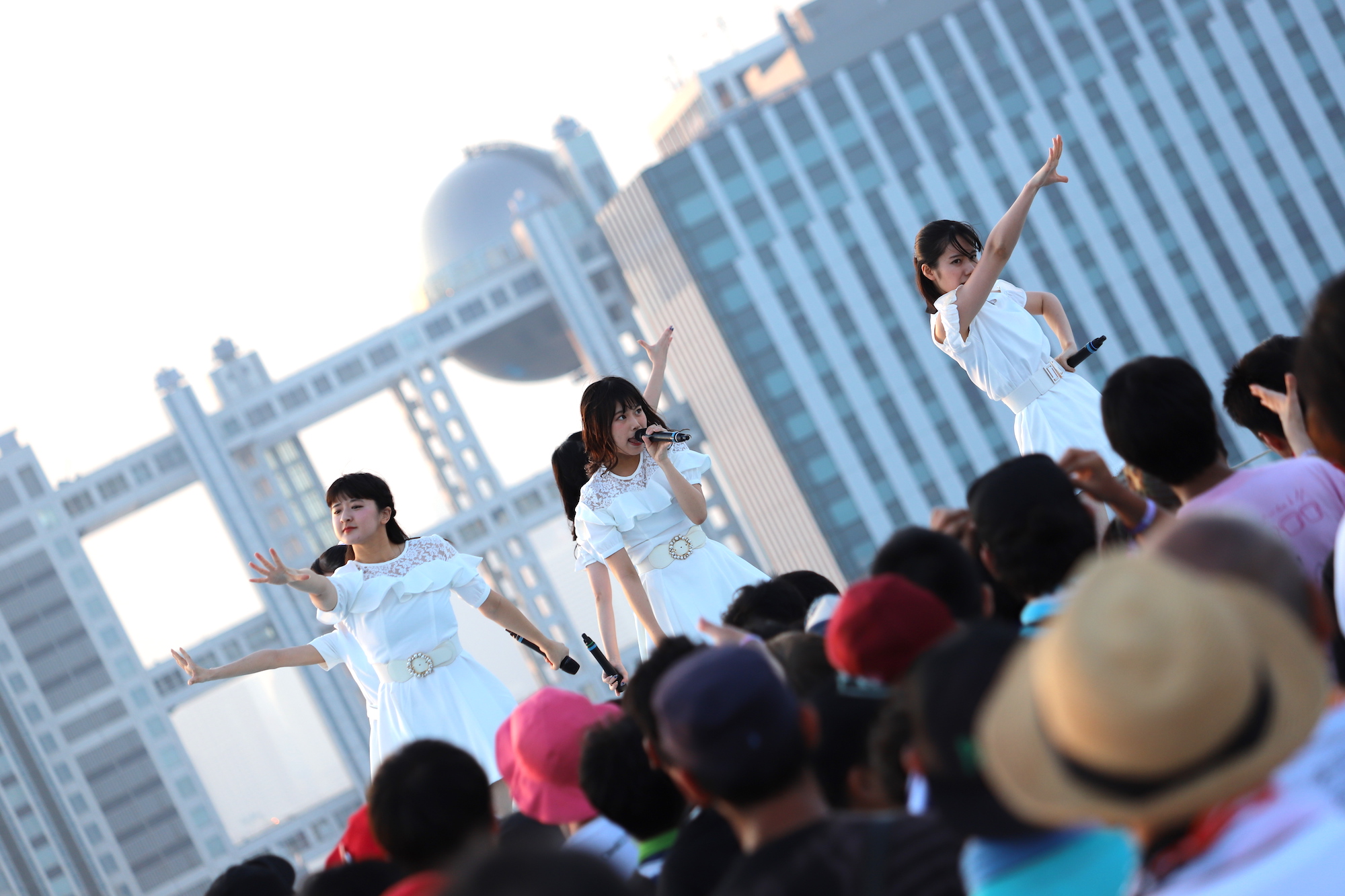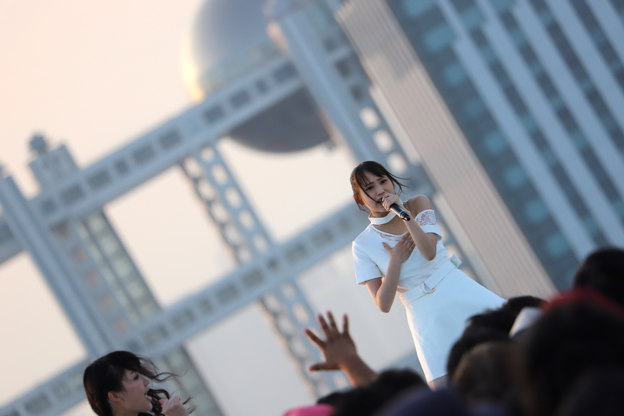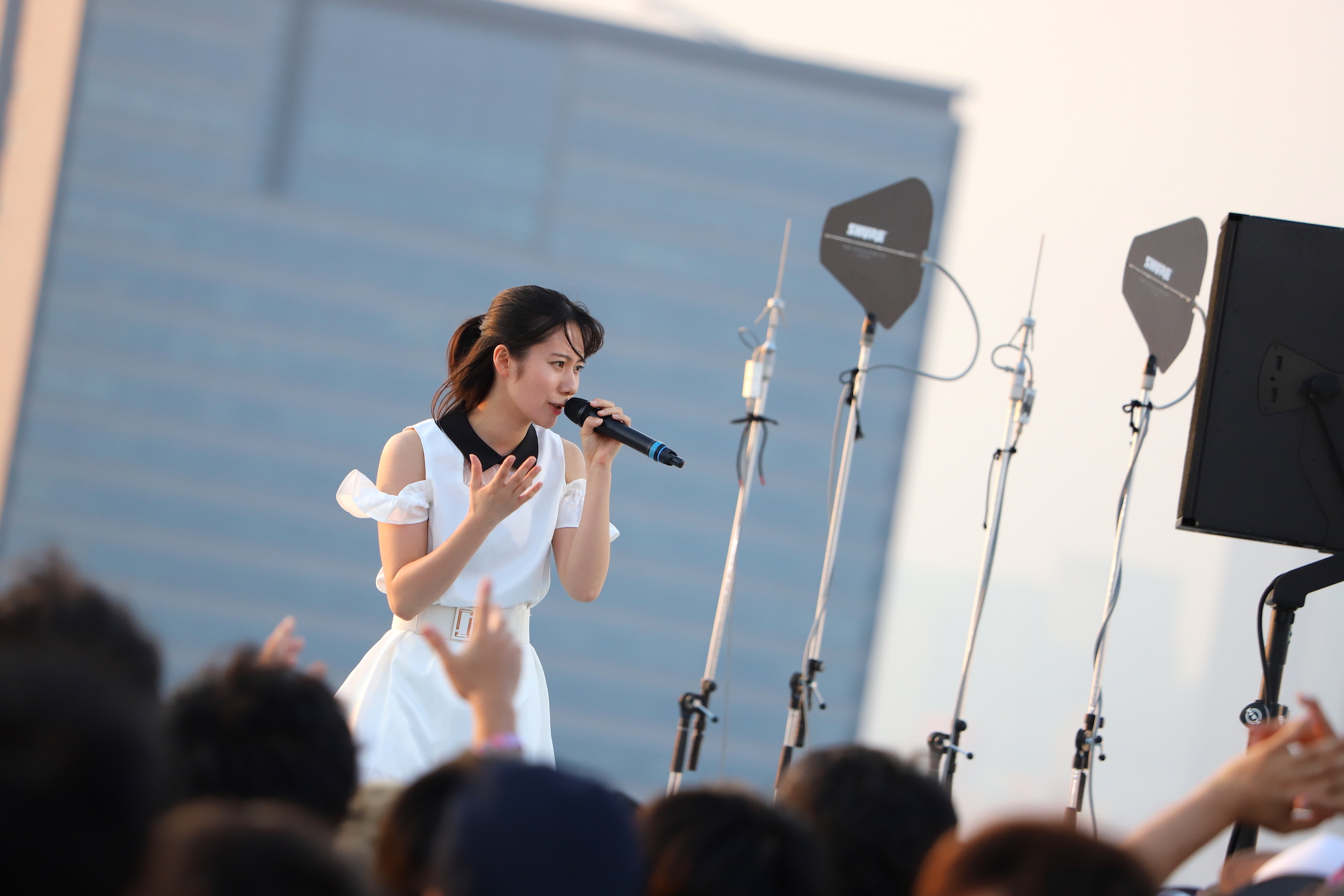 SKY STAGEの夕日を浴び、空の天蓋に白いワンピース衣装がとびきり絵になる姿でパフォーマンスしたYamakatsu。「distopia」のエモーショナルな流れから気合いを入れる「対番兵器」では大きな歓声が沸き起こった。