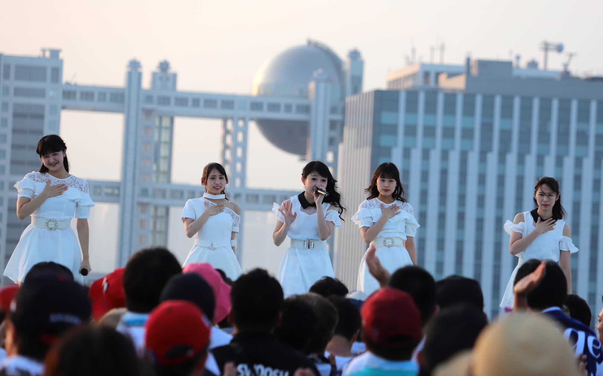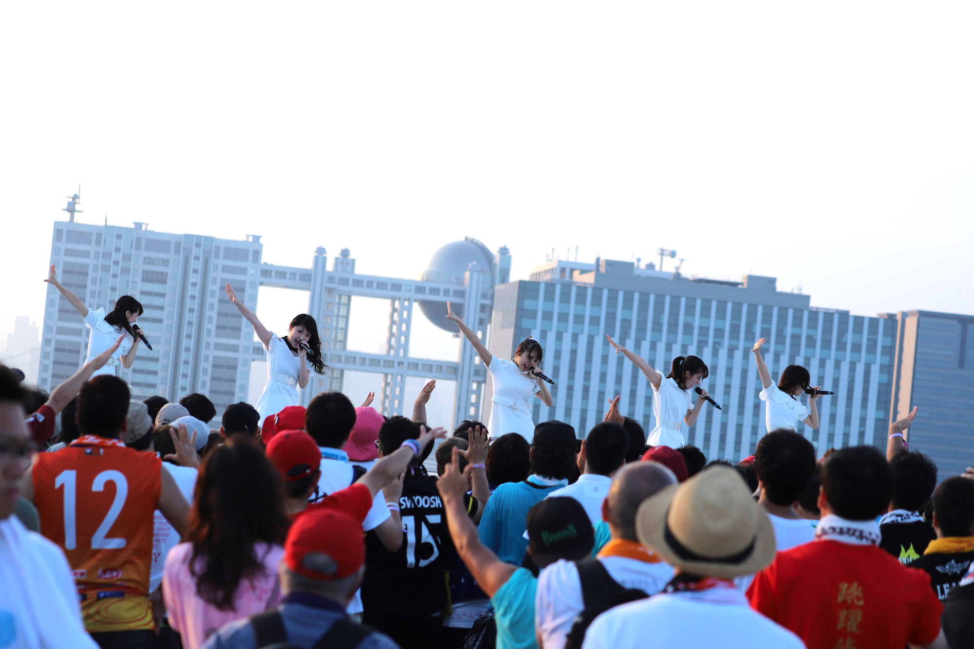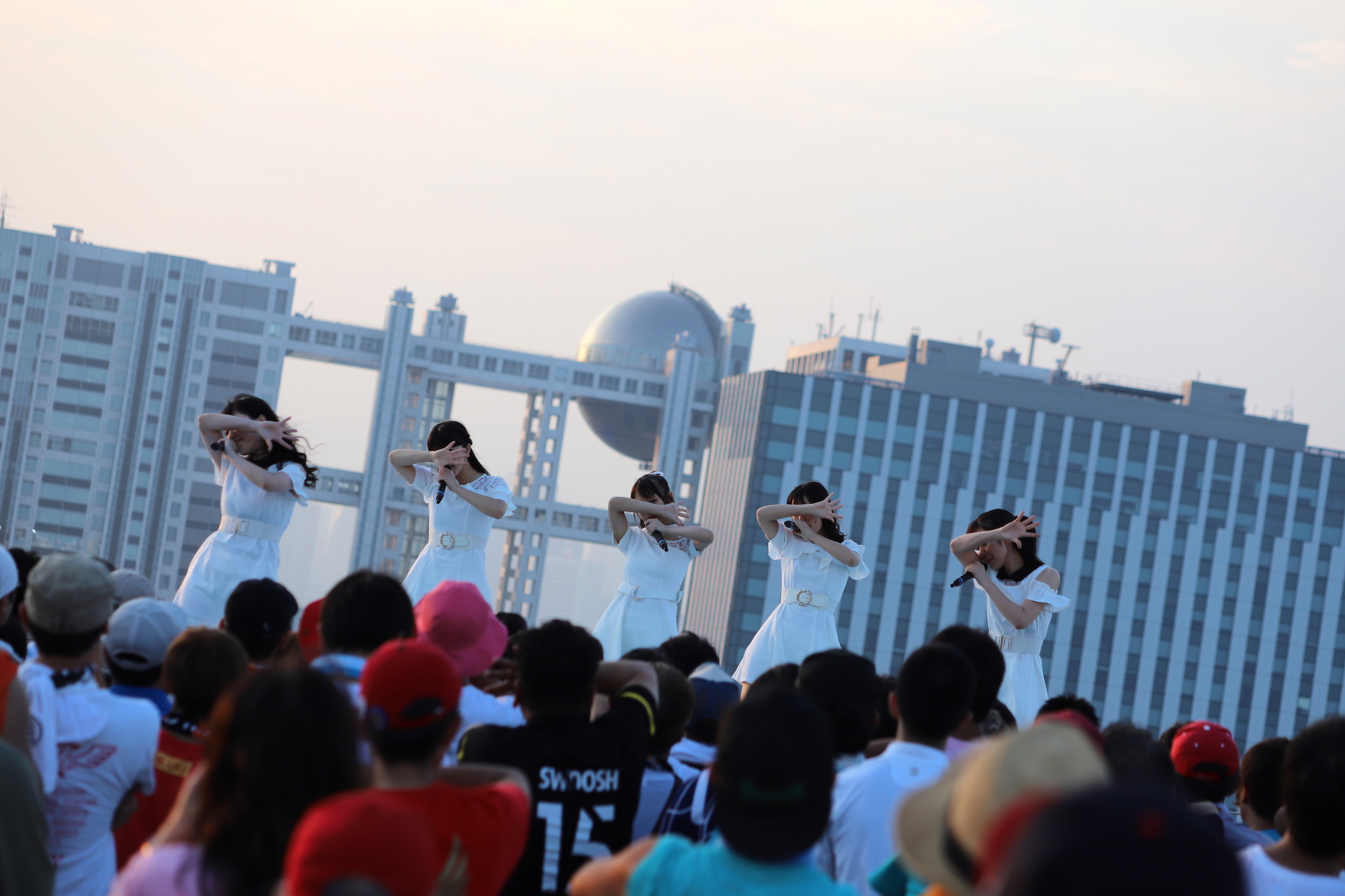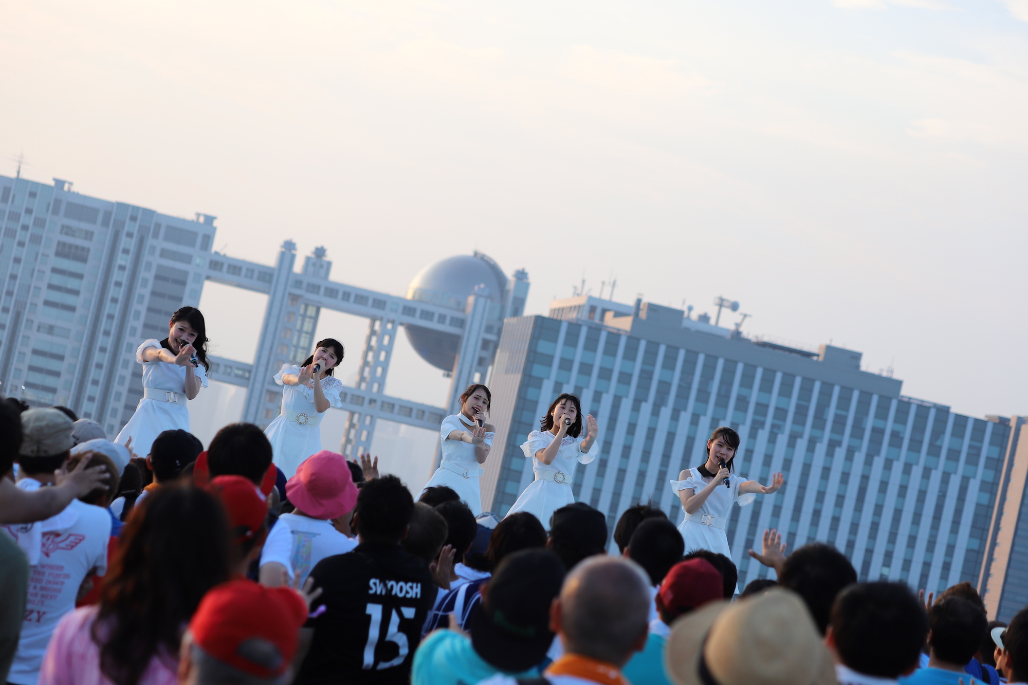 SKY STAGEの夕日を浴び、空の天蓋に白いワンピース衣装がとびきり絵になる姿でパフォーマンスしたYamakatsu。「distopia」のエモーショナルな流れから気合いを入れる「対番兵器」では大きな歓声が沸き起こった。