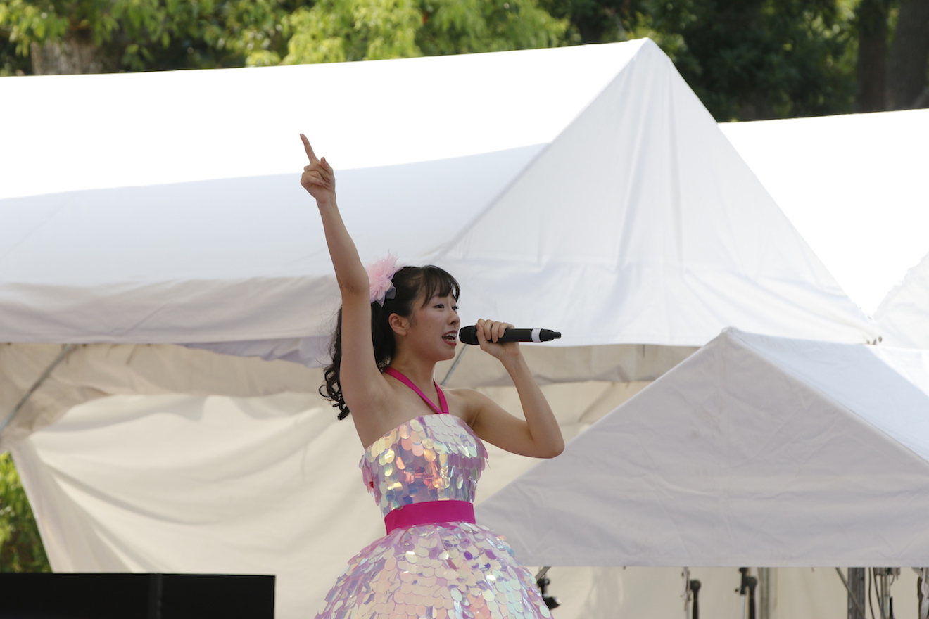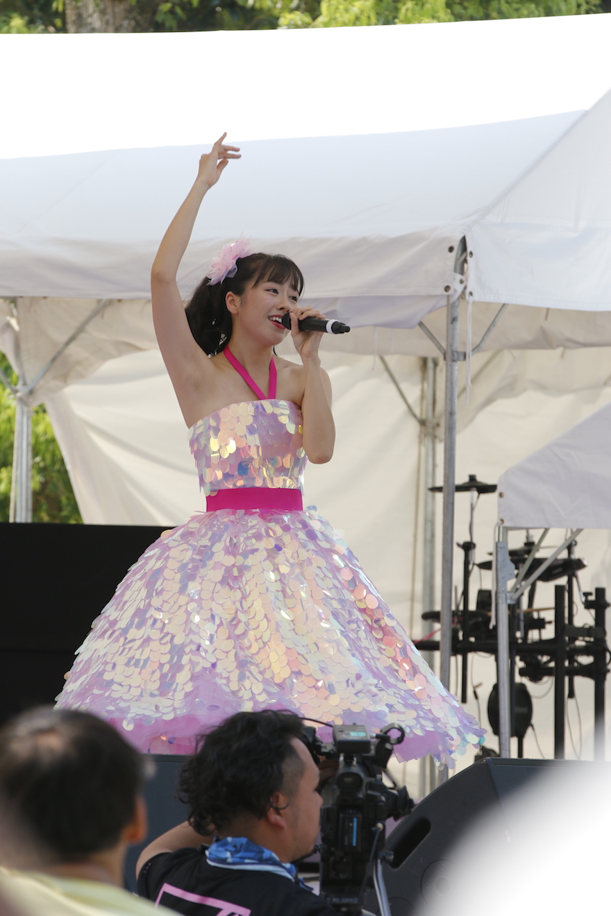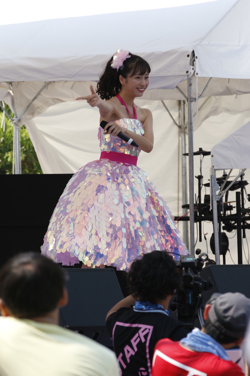 TIF初日のSMILE GARDENトップバッターには、去年に引き続き、ももいろクローバーZの佐々木彩夏が登場。「日本最大級のアイドルフェスの幕開けけだ~!」の掛け声とともに、早朝からSMILE GARDENは、佐々木のイメージカラーであるピンク色に染まった。