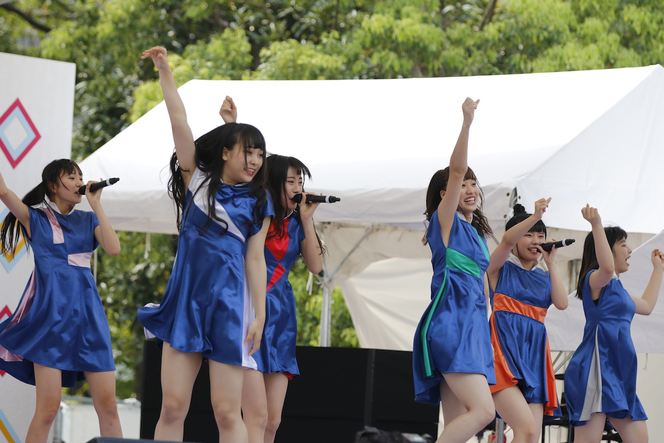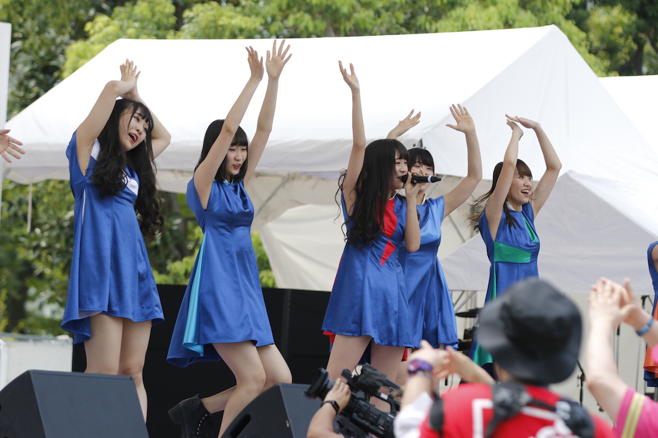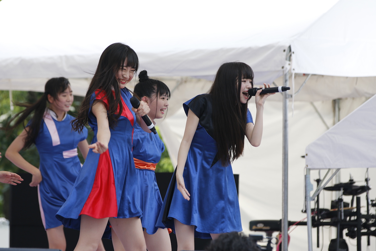 「monogatari行くぞー!!」という掛け声とともに元気よく登場したmonogatariは、平均年齢15歳という若さと、全身全霊のパフォーマンスが魅力的。この日のステージでも、とにかく全力で一気に駆け抜け、観客達を魅了した。