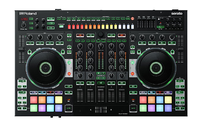 ▲DJコントローラー「DJ-808」は、人気のDJソフト「Serato DJ Pro」に完全対応。本体内蔵の「TR-808」のリズム・サウンドを組み合わせて演奏できるユニークなDJコントローラーだ。