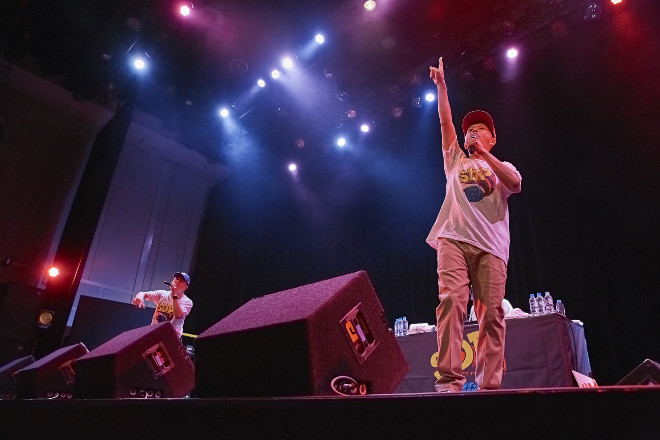 スチャダラパーはオープニングから、舞台『男子・天才バカボン』で使った「Bakananova」で赤塚不二夫攻め。アニは、タモリが弔辞で自身を“赤塚作品のひとつ”と述べたことに触れ「我々は赤塚作品の一部! 端っこの背景のようなもんですが」と話し、赤塚原作の舞台『男子!レッツラゴン』の曲「レッツロックオン」を披露。ラストは“41歳の春~”にインスパイアされて作ったという「41 Is The Number」で締め、ステージを降りるBGMには「元祖天才バカボンの春」を流すという徹底した赤塚シフトで、終始赤塚不二夫ファンの喝采を浴び続けた。